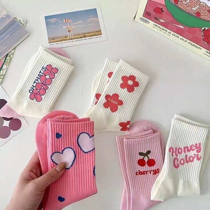CIVETO KK313 Kaos Kaki Wanita Korea Beautiful Pink Love Women Socks