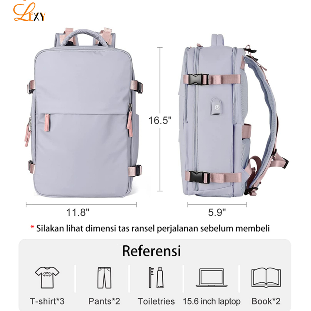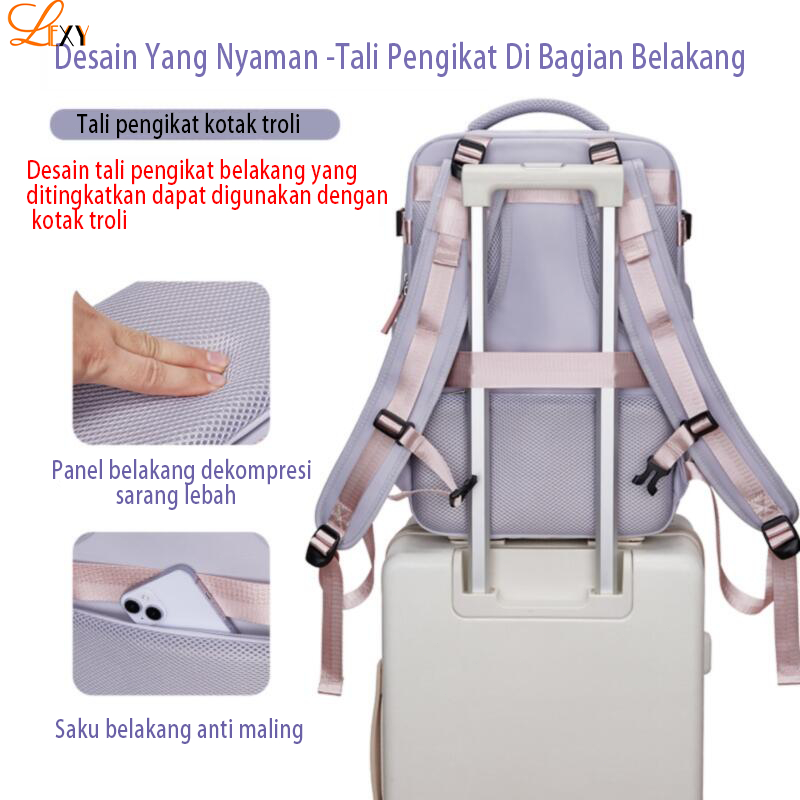Lexy Tas Ransel Traveling Wanita Tahan Air Kapasitas Besar Outdoors Multifungs Tas Sekolah Wanita