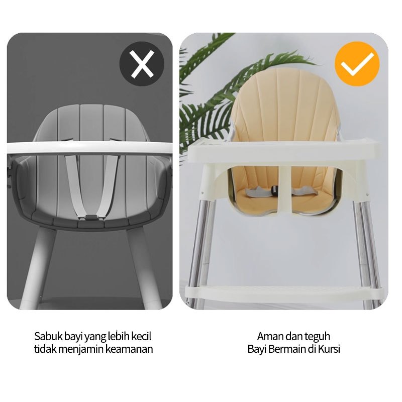 Baby High Chair Kursi Makan Bayi Adjustable Tinggi – Kursi Booster Anak dengan Sabuk Pengaman & Nampan Lepas Pasang