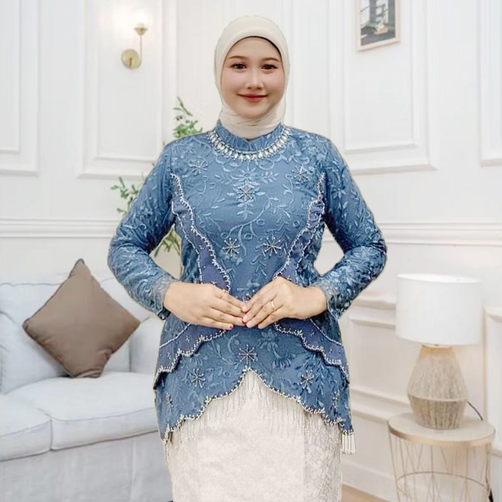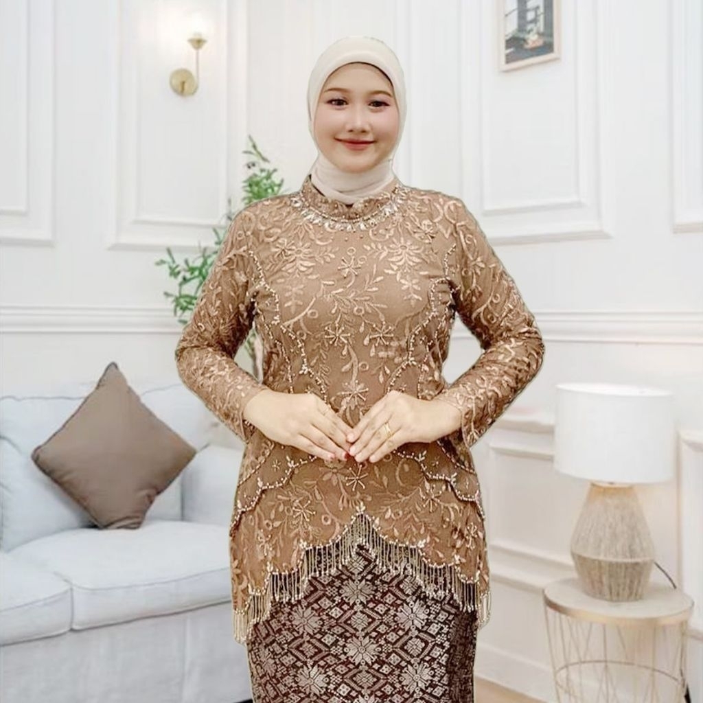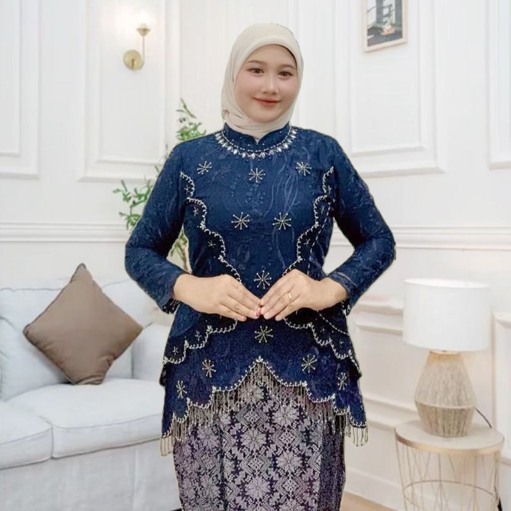 SM Kebaya / Kebaya Rumbai Payet Mewah Setelan Songket / Kebaya Wisuda Mewah Terbaru / Kebaya Emerald Modern / Kebaya Pay