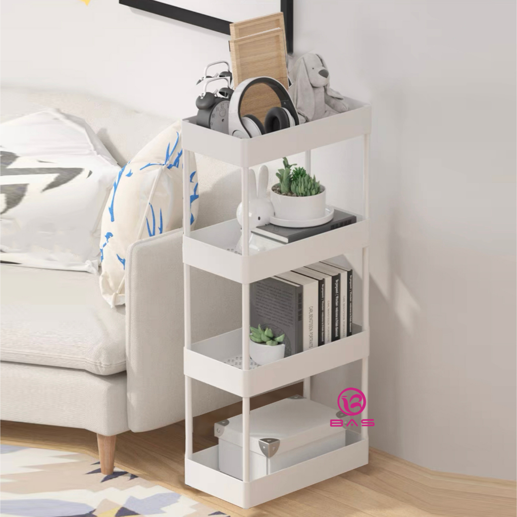 BAS square rak susun plastik rak dapur serbaguna rak toilet 4 layer tanpa roda