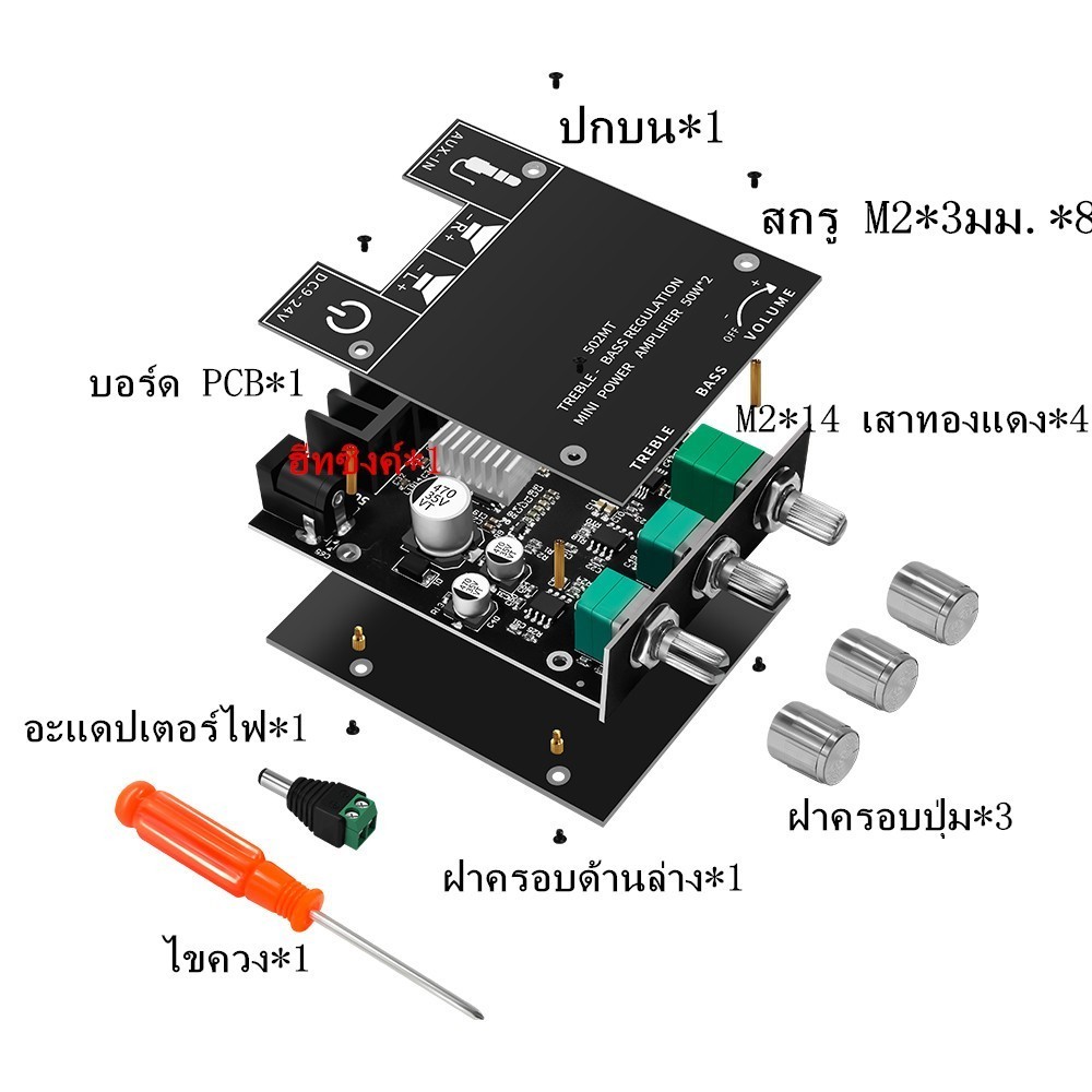 Wuzhi Audio | ZK-502MT 2.0 Stereo Bluetooth Audio Digital HIFI Power Amplifier Papan Modul 50W 2 Penyesuaian Bass Ting