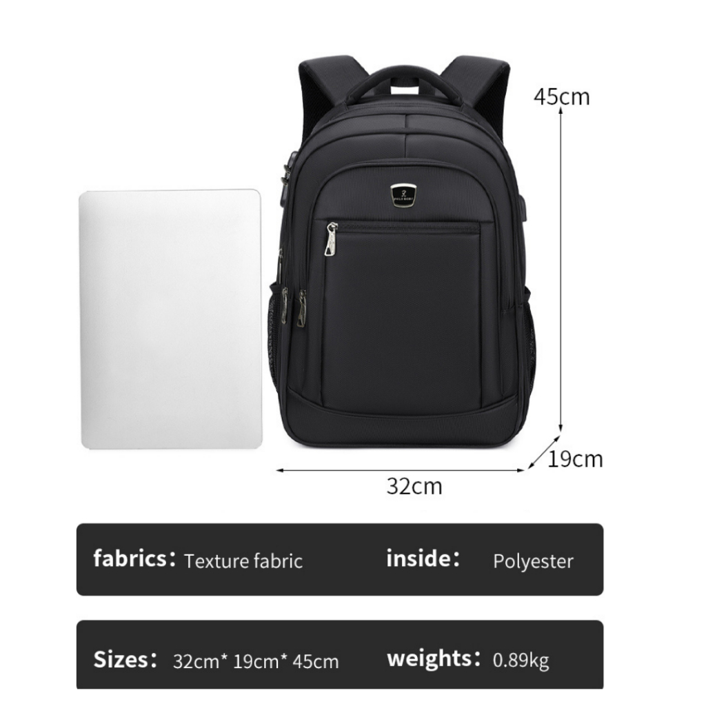 Crossover - Tas Ransel Laptop Polo Pria Tahan Air USB Gratis Rain Cover 18 Inch Tebal