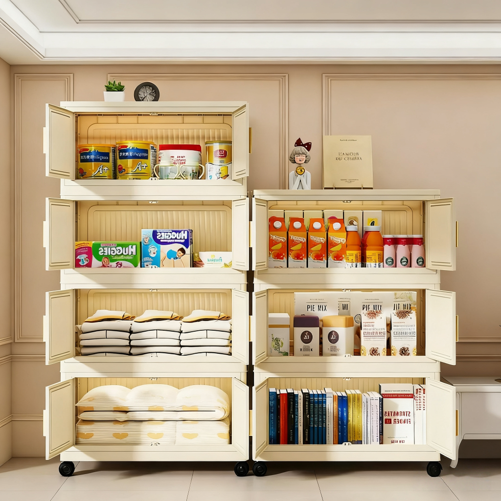 EH [44 cm Besar] Lemari Plastik Lipat 2-5 Susun + Roda Rak Serbaguna Wardrobe Storage Aesthetic untuk Lemari Baju