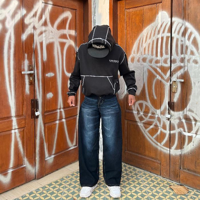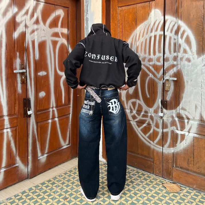 (UNISEX) Celana Jeans Wide Leg Wisker Lebar Gombrong Denim Panjang Nyaman