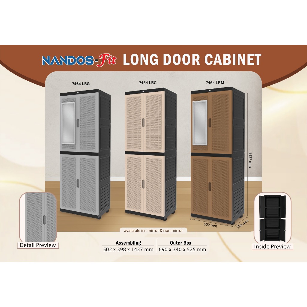 NAIBA - LEMARI NANDOS FIT LEMARI SUSUN LONG DOOR CABINET SUSUN 4 KACA KUNCI