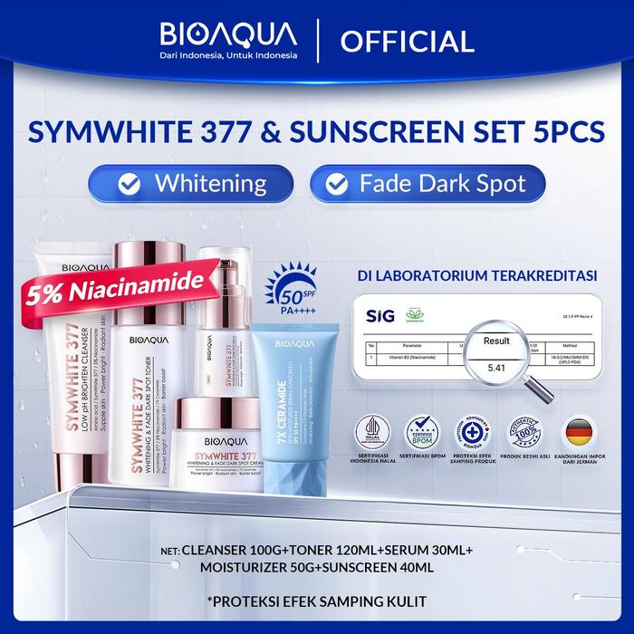 [Star] 【Buy Skincare 5in1 Bundle】BIOAQUA 5 In 1 Bundle Paket: Face wash +Toner+serum+Moisturizer+Sunscreen, Barrier Rep