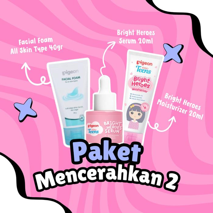 [Star] Pigeon Teens BRIGHT HEROES SERIES Skincare SET Paket Mencerahkan Wajah Remaja Niacinamide Infused - PAKET 1
