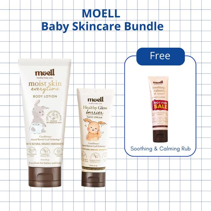 [Star] [SPECIAL PAKET BUNDLE} Moell Baby Skincare Body Lotion+Face Cream (FREE CALMING RUB) - Paket 6 Body Lotion + Body