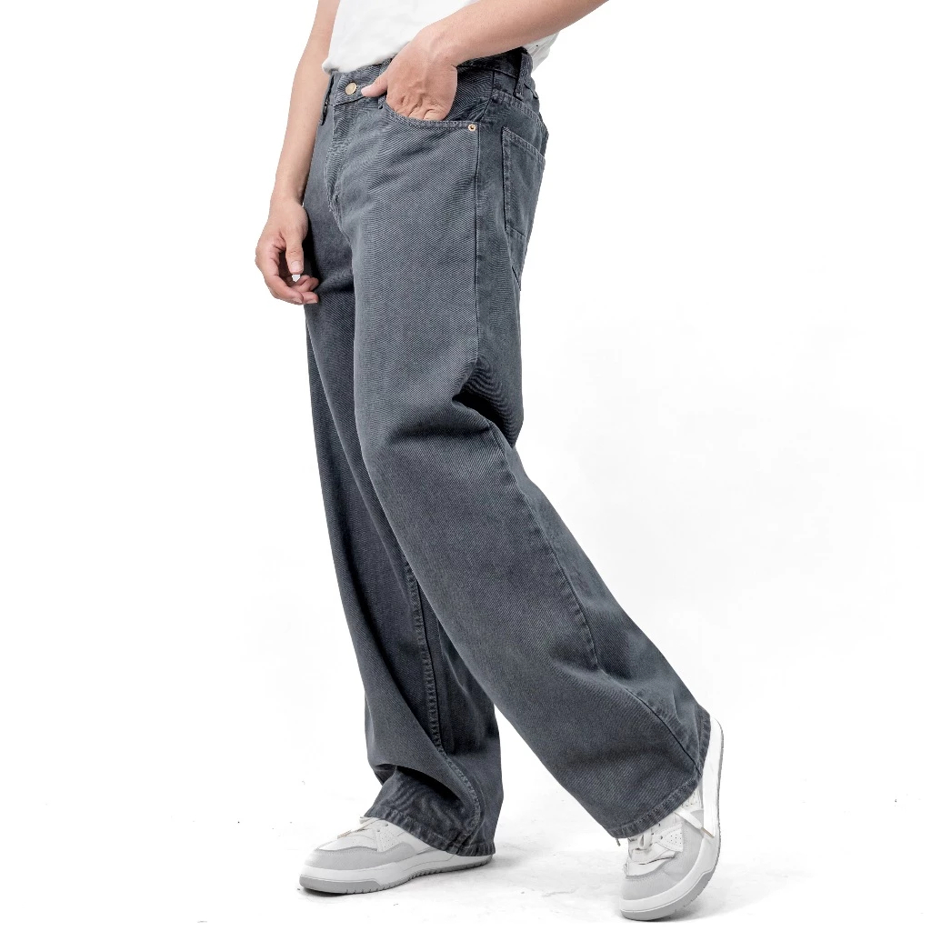 Celana Jeans Panjang Pria Wide Leg Lebar Gombrong Skena Black Wisker loose fit jumbo big Bahan Denim