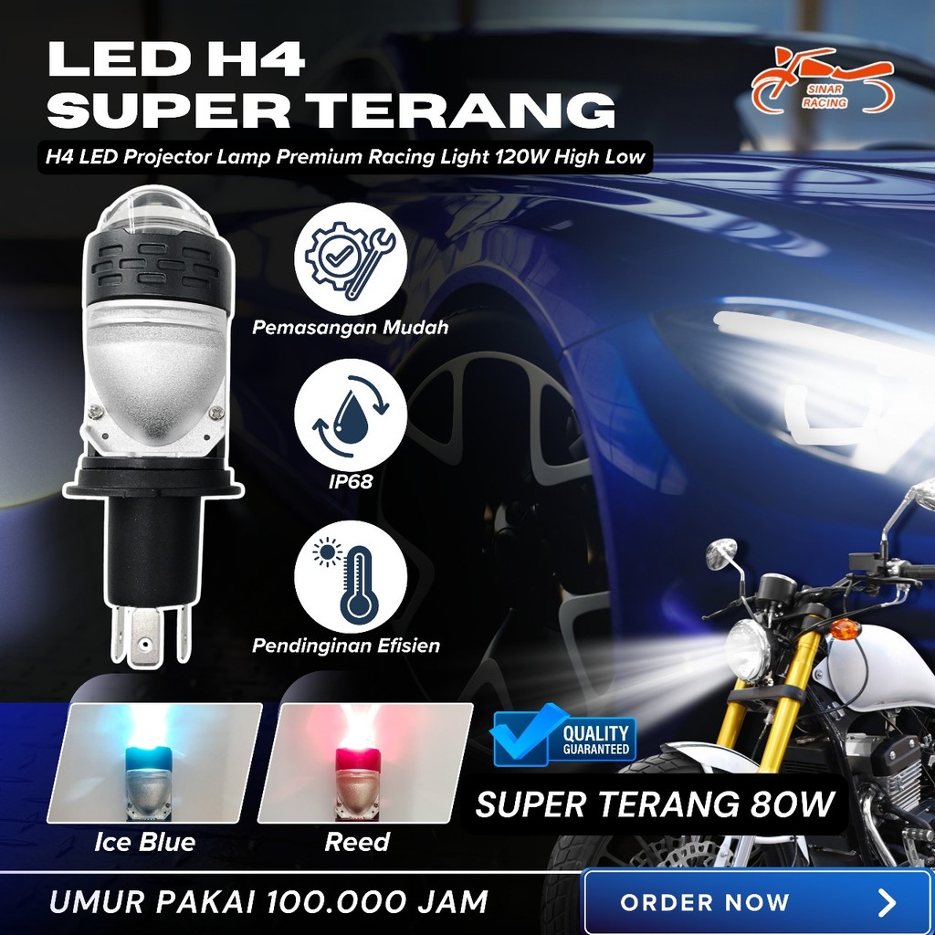 Sinar Rng LED H4 120W Projector Blue Lens Dengan Devil Eye & Kipas Pendingin Untuk Motor/Mobil