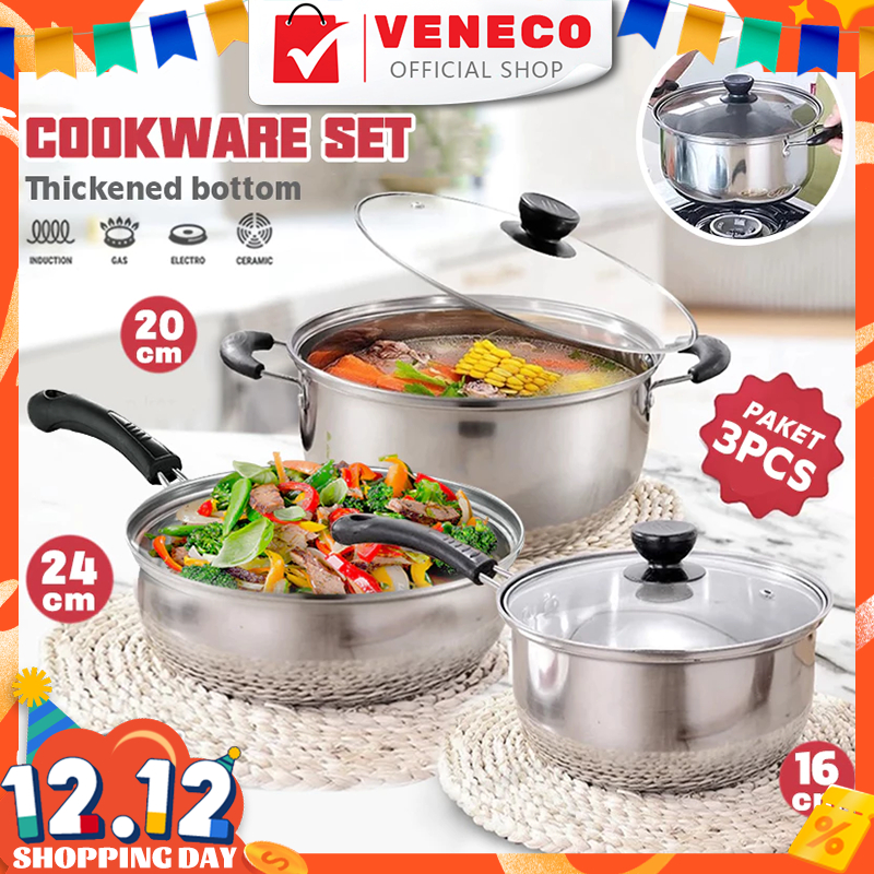 PANCI STAINLESS STEEL 3 Set Panci dan Wajan Stainless Steel / Panci Sup 20cm Panci Mie 18cm Wajan 24cm