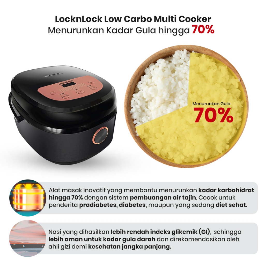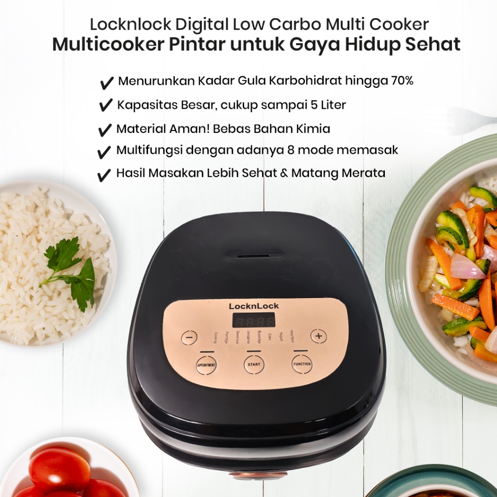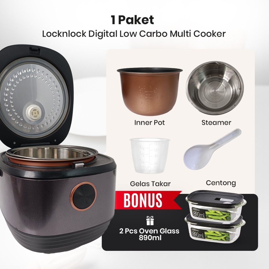 Locknlock Digital Low Carbo Multi Cooker 2L | Berfungsi Sebagai Rice Cooker Rendah Gula & Rendah Kalori | Cocok Untuk Di