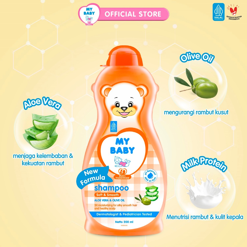 MY BABY Shampoo Soft & Smooth [200 mL / 2 pcs] - Shampoo Bayi Lidah Buaya & Minyak Zaitun - Exp: 04.2027