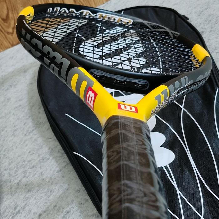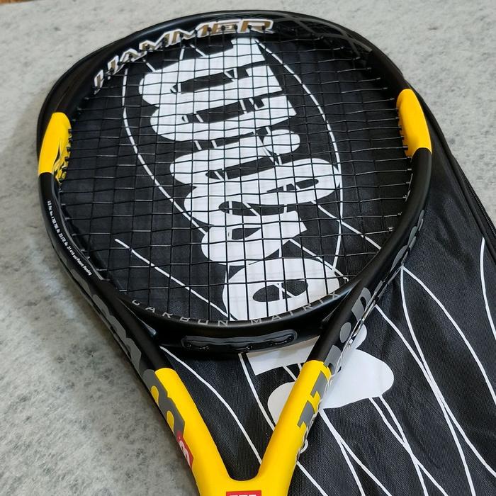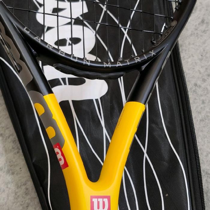 Raket Tenis Pemula Wilson Matrix Oversize Carbon Black Yellow Siap Pakai Ada Tas