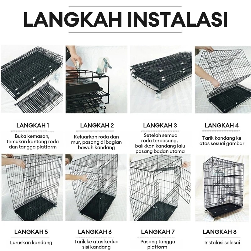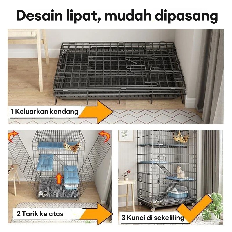 GREENPETS Kandang Kucing 3 Tingkat Bisa Dilipat Hemat Tempat Kokoh dan Murah Cocok Indoor Multi