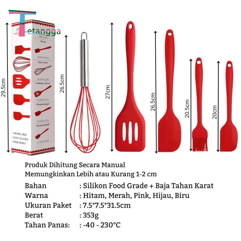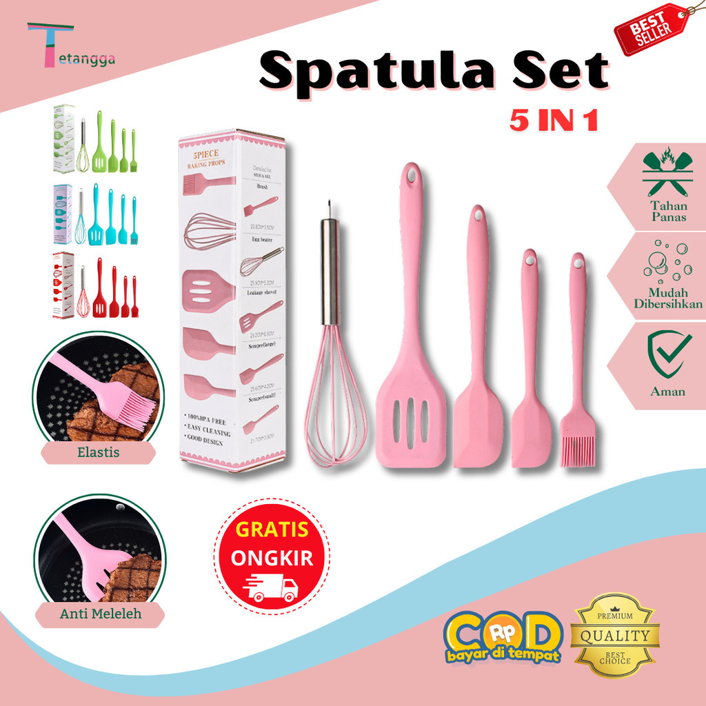 Set Spatula Peralatan Masak Sutil Silikon Non Stick Cooking Tools Isi 5 Pcs Kitchenware Spatula Set