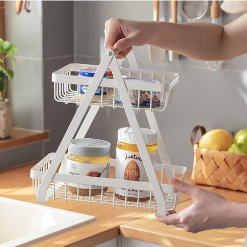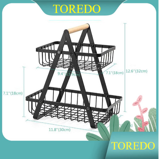TOREDO L4 Keranjang Buah Besi Kayu Rak Dapur Serbaguna 2 Tingkat Bawang Buah Sayur Estetik