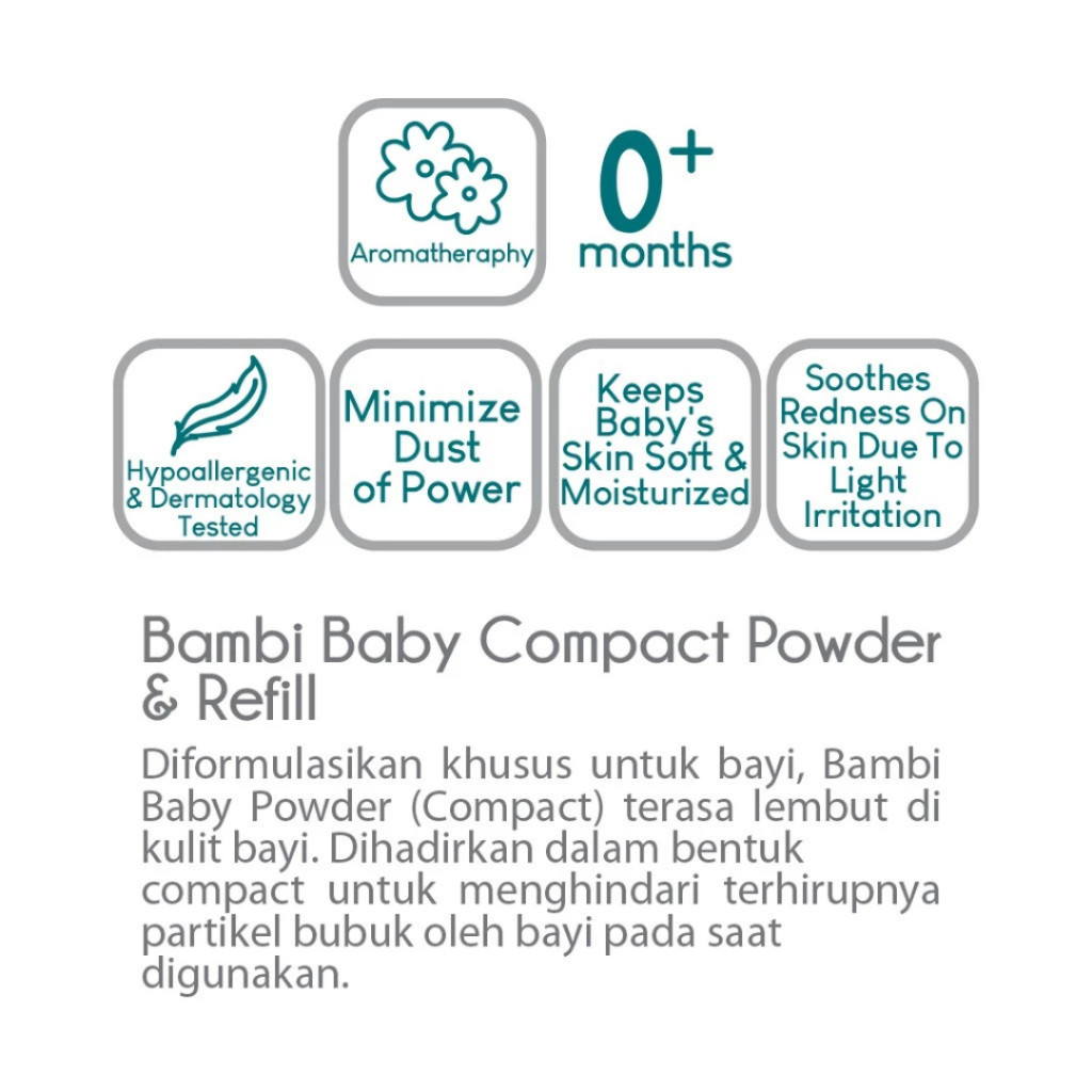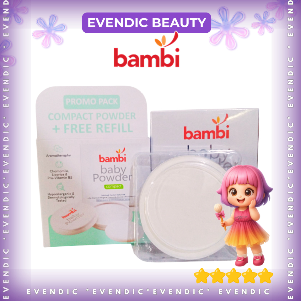 BUY 1 + 1 Bambi Baby Compact Powder | Refill | 40gr | Bedak Padat Bayi Kulit Normal | Evendic Beauty