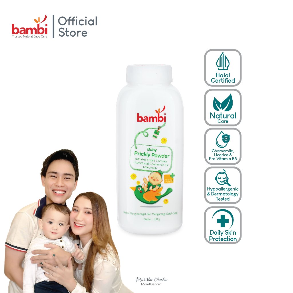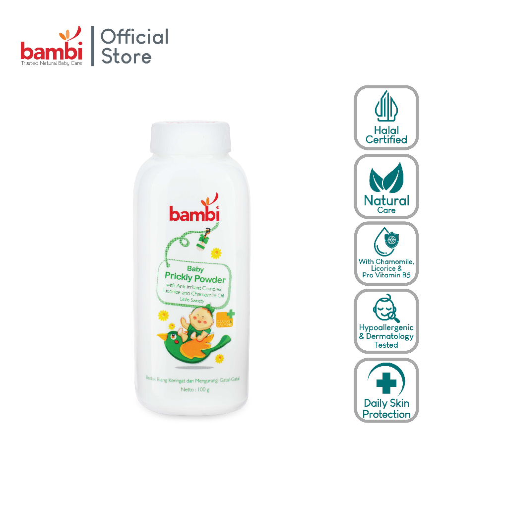 Bambi Baby Powder Prickly Heat 100gr | Bedak Tabur Khusus Biang Keringat Bayi Kulit Normal - Sensitif | Meredakan Gatal