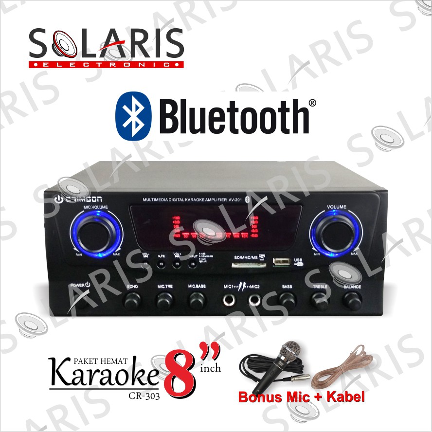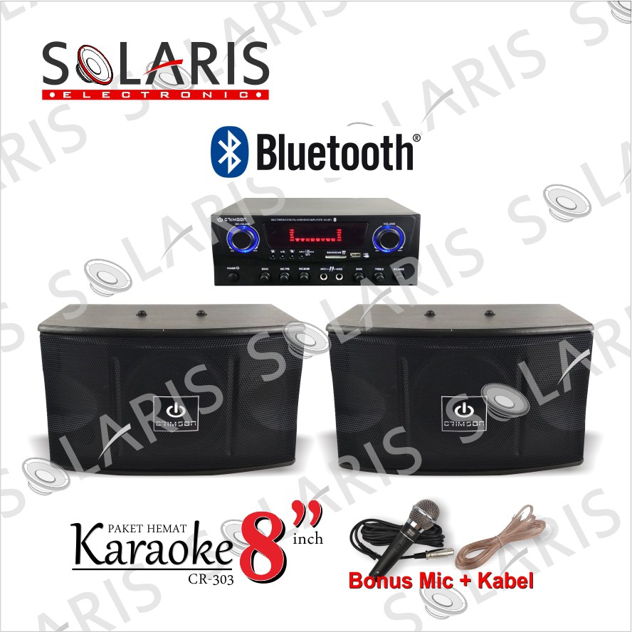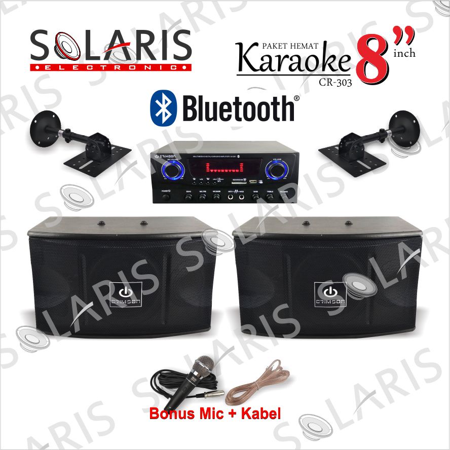 Paket Speaker Karaoke Solaris 8 Inch Bluetooth Crimson CR-303 Bonus Mic Dan Kabel Speaker