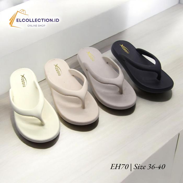 Eh70 & F828 | Sandal Jepit Wanita Elegan | Sendal Jepit Kekinian | Sandal Anti Slip Ringan Dan Nyaman Murah - Black, 36