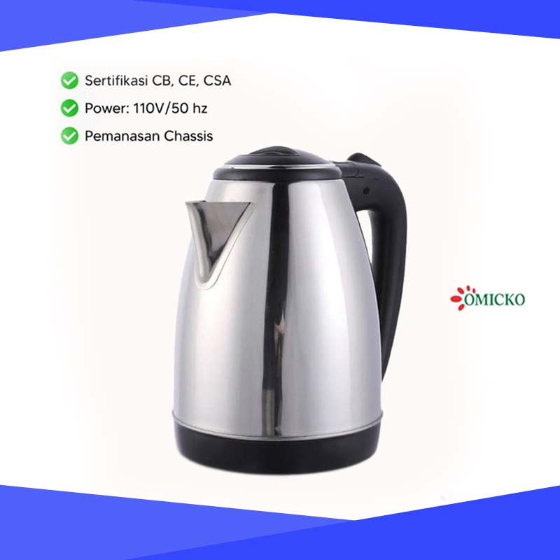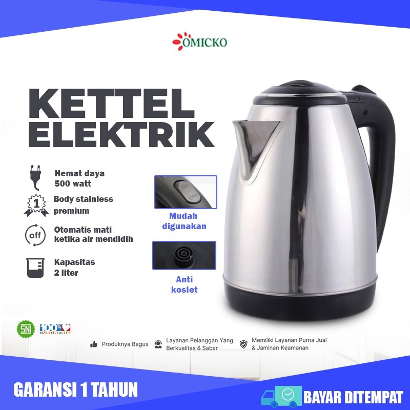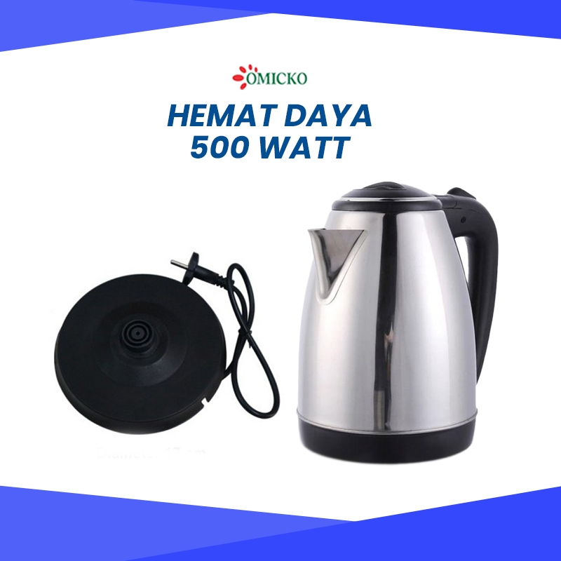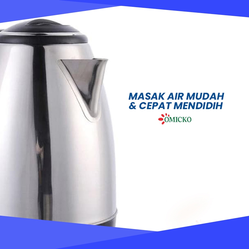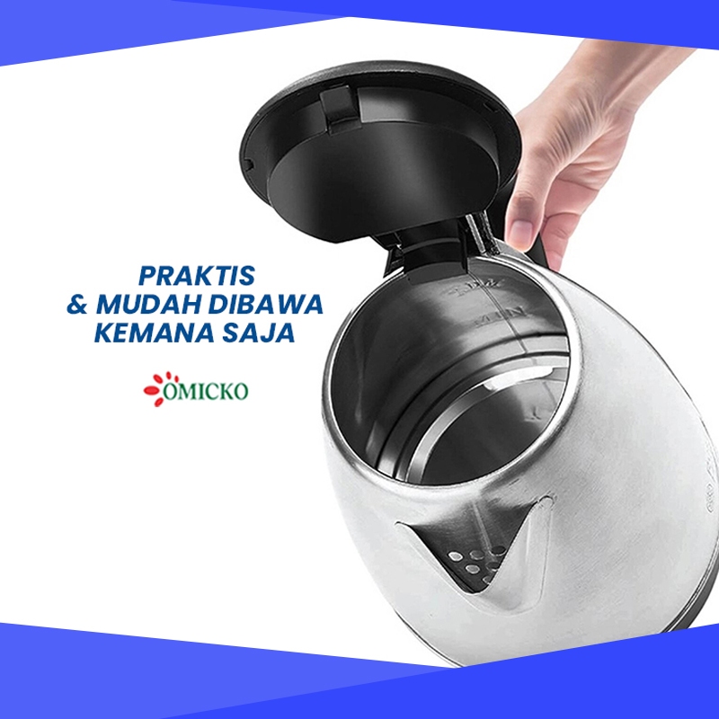Omicko Teko Listrik 2 Liter Full Stainless Steel Pemanas Air Electric Kettle Ketel Besar Otomatis