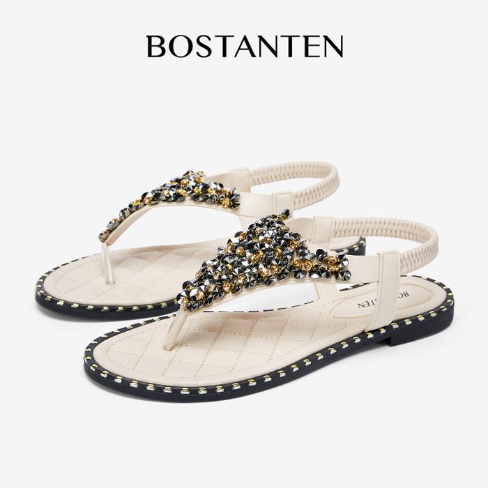 Bostanten Sandal Wanita Baru Dengan Sol Tipis Sandal Jepit Batu Bata Glitter Halus - Putih Pucat, 36