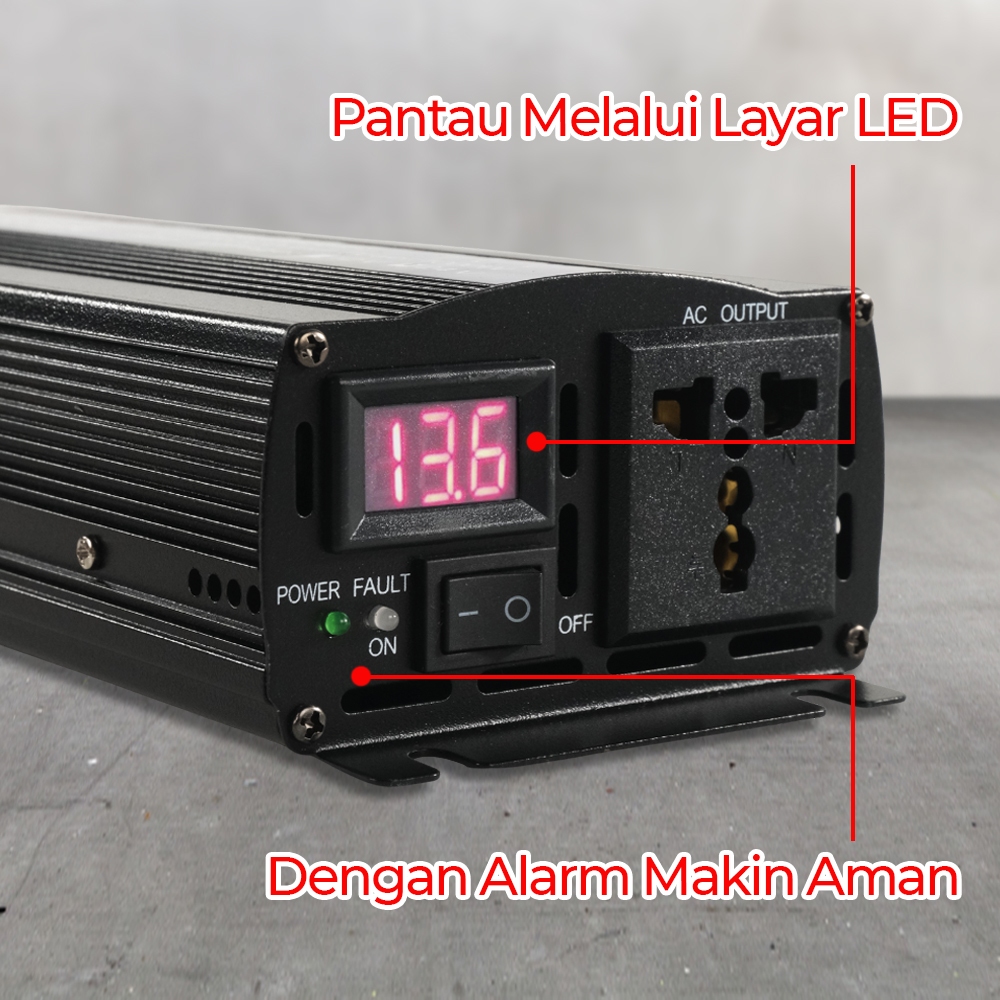 Taffware Power Inverter Mobil Pure Sine Wave DC 12V 24V 48V 60V to AC 220V 2000W - NBQ2000W