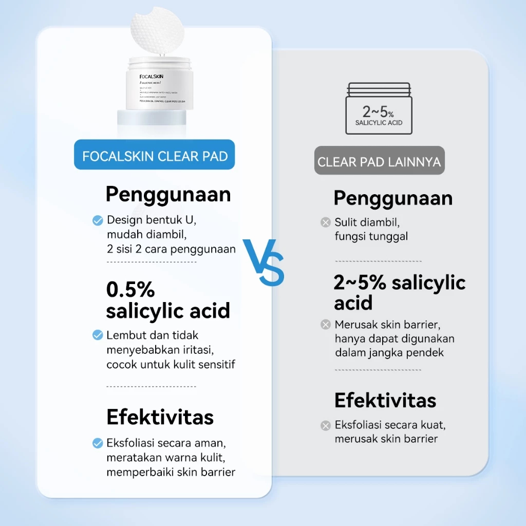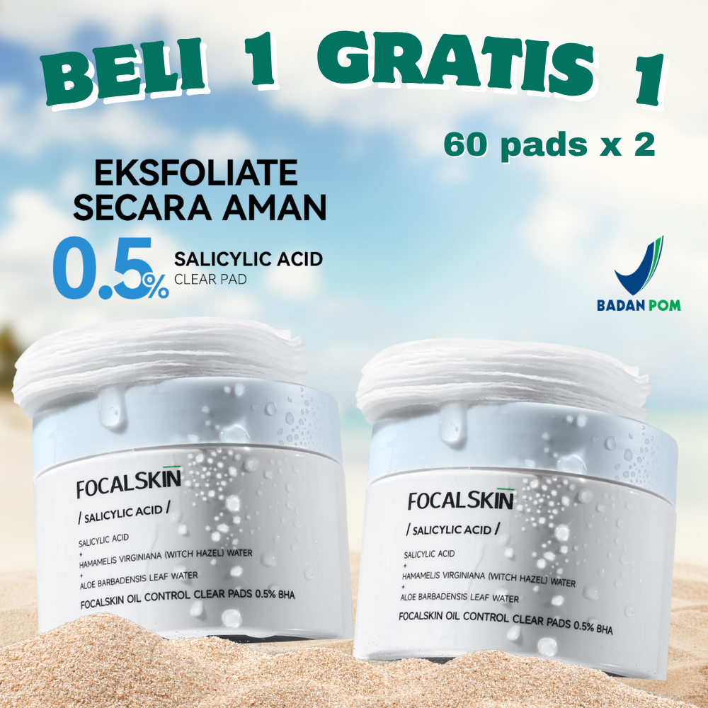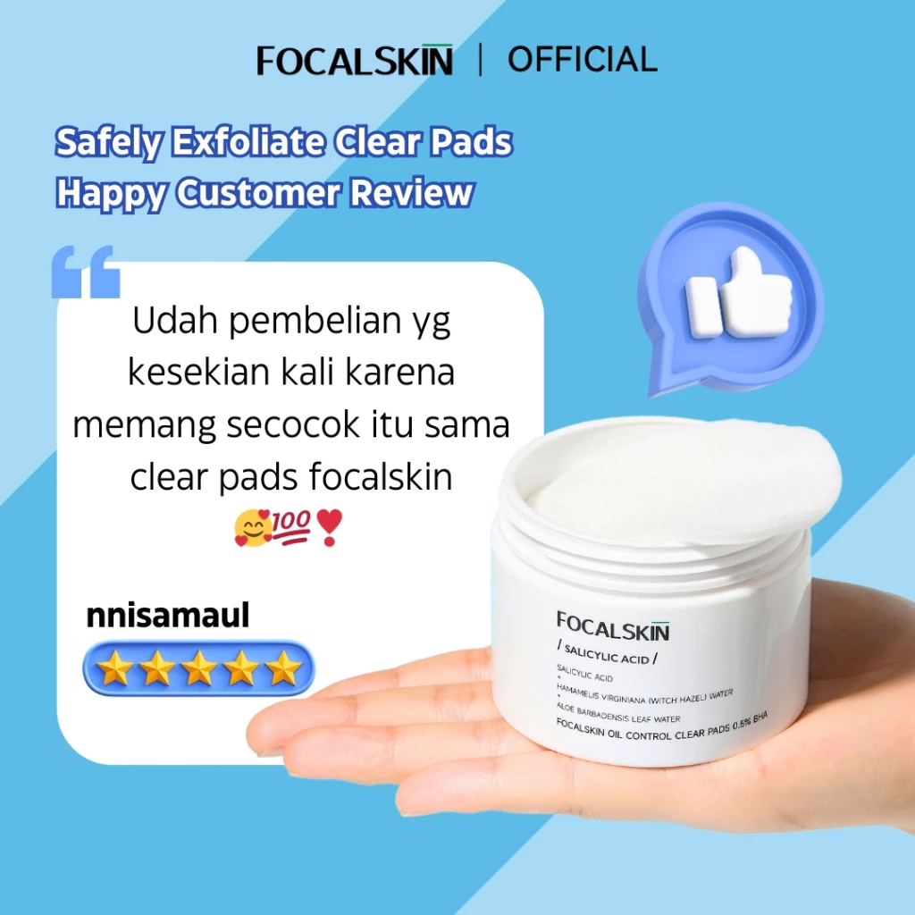 FOCALSKIN Acne Exfoliating Toner Pad 60 Pads | Kapas Eksfoliasi Wajah, Atasi Komedo, Kulit Kusam & Jerawat | Double Cleansing