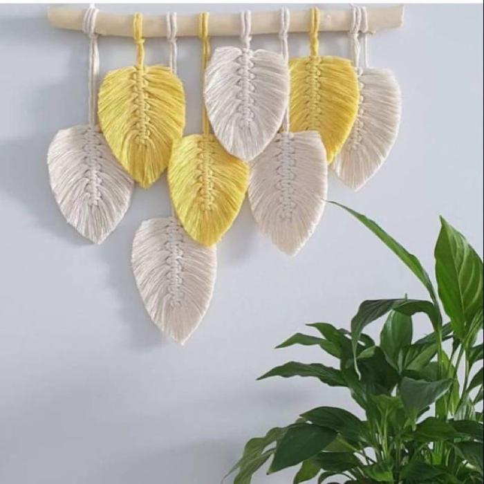 Hiasan Gantung Dinding R Tamu Macrame Daun Aesthetic-Dekorasi Dinding Macrame Daun Aesthetic Hiasan Kamar Tidur Wani