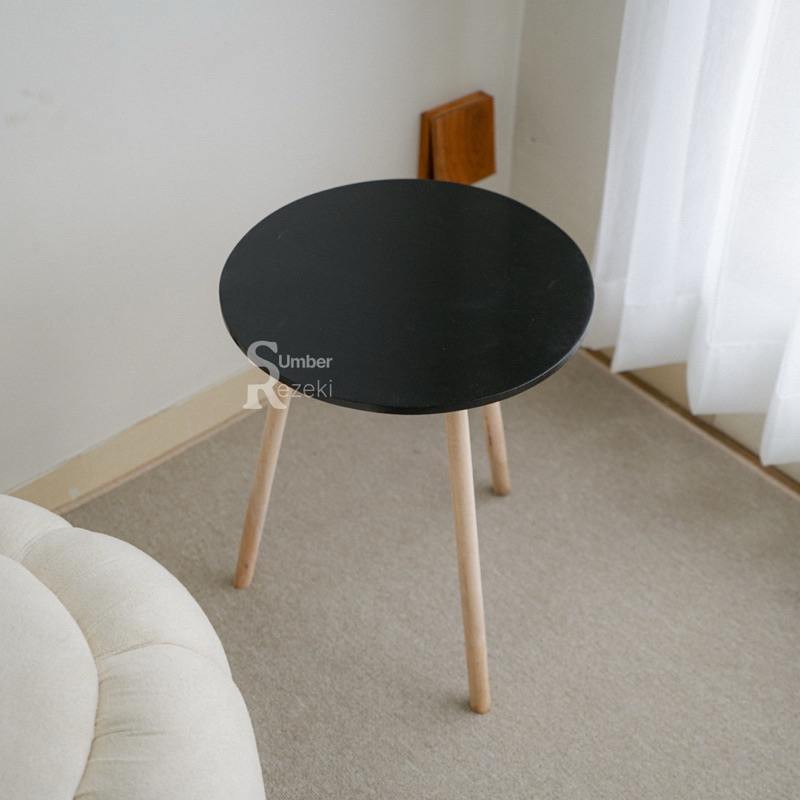 Meja Ruang Tamu Minimalis Model Bulat Aesthetic Industrial Kayu Sudut | Samping Modern Terbaru Termurah