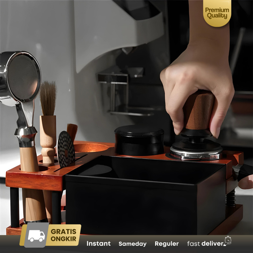 Tamper holder Knock box Sikat kopi Coffee tamping station Kayu TS-8