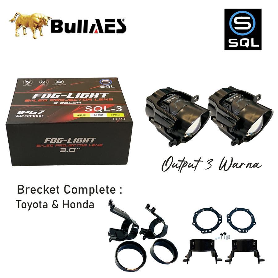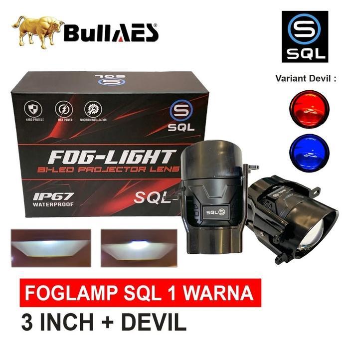Foglamp Biled Fog Bilens 3 Inch SQL Bluelens 3 Warna With Devil Eye Waterproof IP 67 Bracket Komplit
