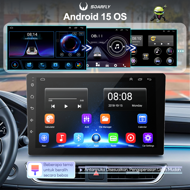 SOARFLY Head Unit Android 7/9/10 Inci 6+64G Carplay Android 15 Dukungan WiFi/GPS/Youtube/Pendinginan kipas ganda