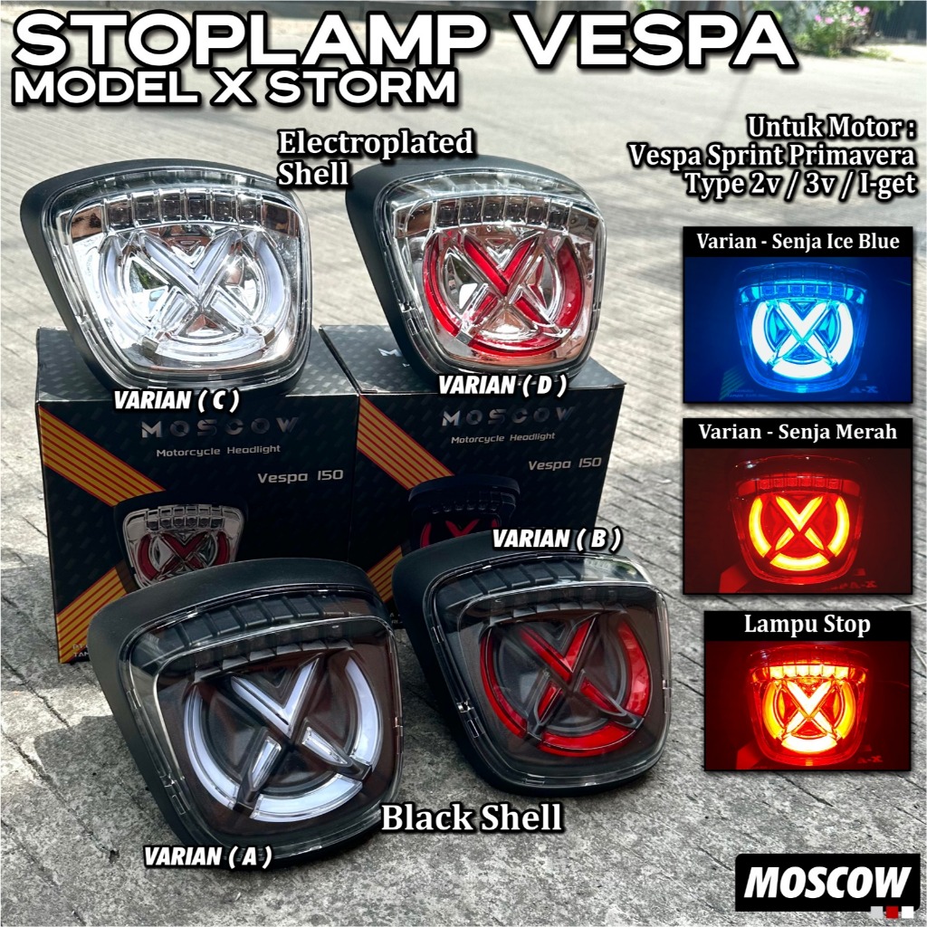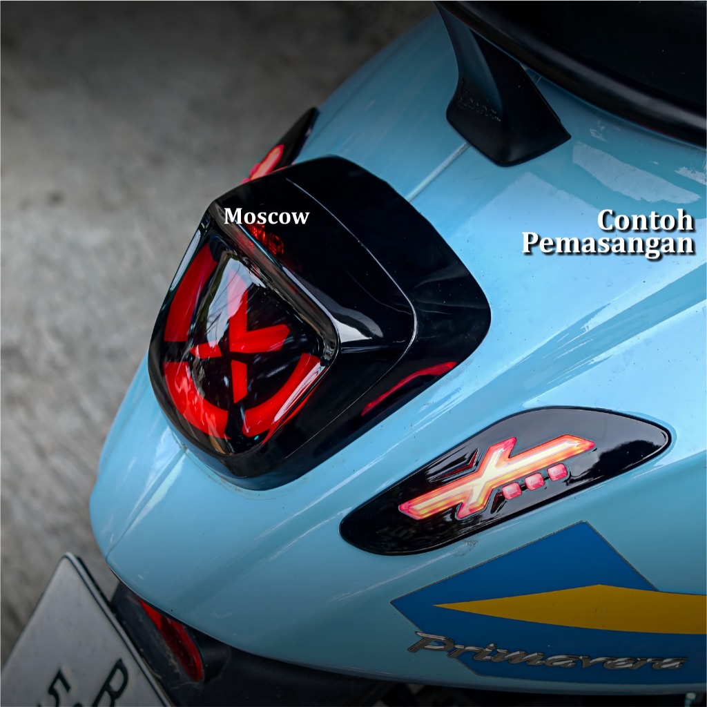 MOSCOW VESPA-X LAMPU Stoplamp Vespa Sprint Primavera 2V 3V I-get MIKA SMOKE / CLEAR + LAMPU SEN RUNNING SENJA ICEBLUE RED Lampu Stop Rem Vespa 3V 2V I