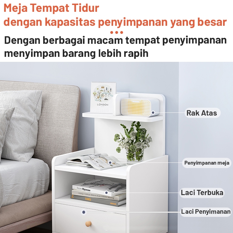 Futurehome Meja Nakas Mini Meja Sudut Samping Tempat Tidur Nakas Kayu