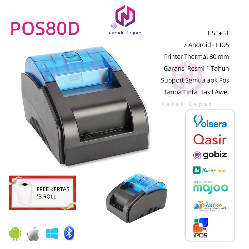 Printer 80Mm Desktop Thermal Kasir 80Mm Tm-80D - Bluetooth Rj 11 Free Kertas Printer3Roll