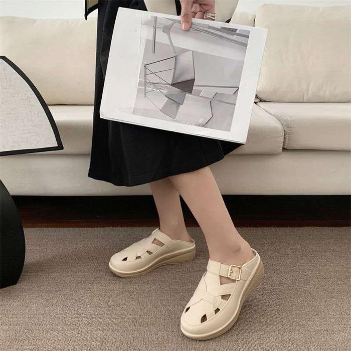 Asfer Sandal Wanita Sendal Selop Premium Wedges Karet Jelly Pcu Kekinian Antislip Empuk Ringan Shoes - Hitam, 36/37