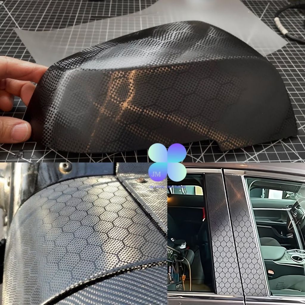 Fanchi Karbon Hexagonal Fiber Pet Id8150 Hitam Skotlet Motif Decal Motor Mobil Lebar 50Cm 152Cm