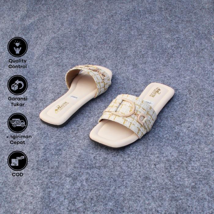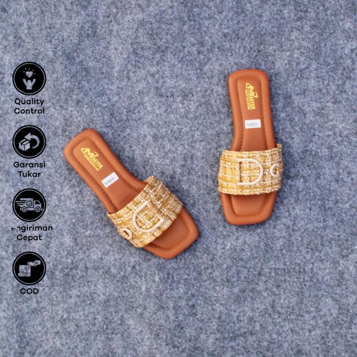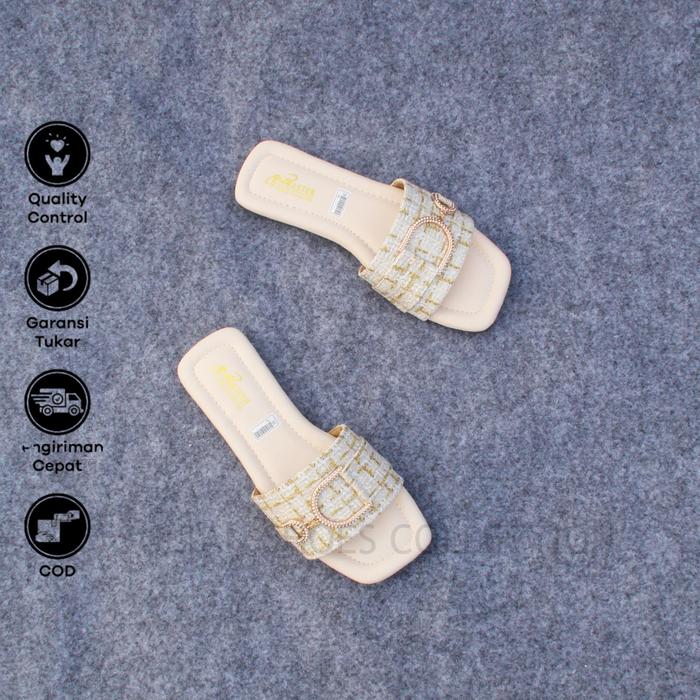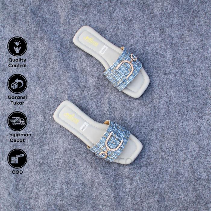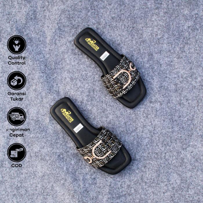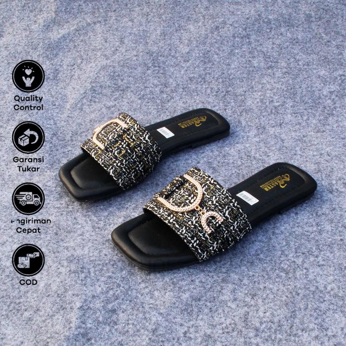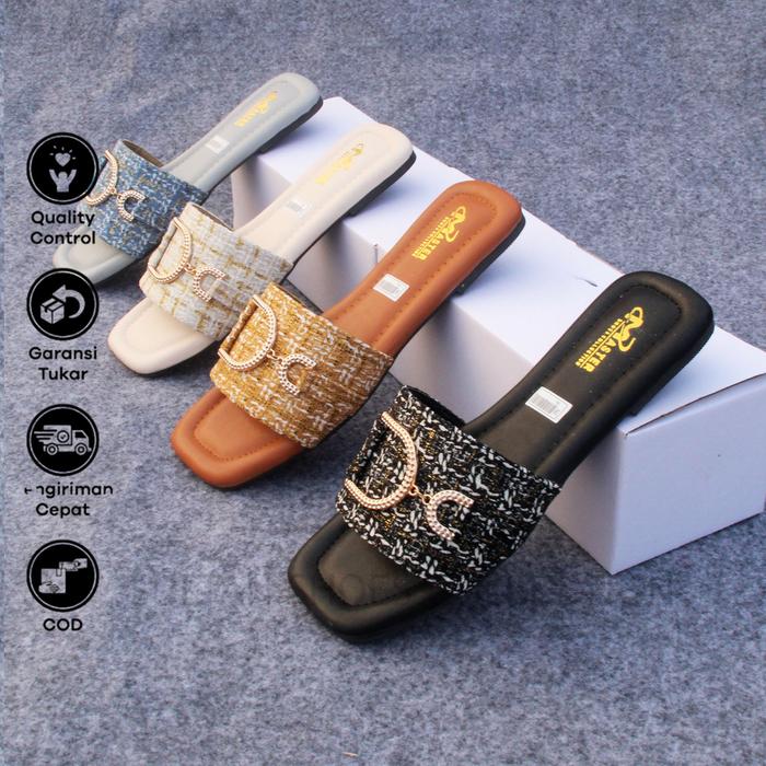 Sultan Shoes - | Sandal Wanita Pesta Kasual Kekinian Flat Teplek Slop Kokop Canvas Kobe Strap Dasi Tali Rantai D Trendy