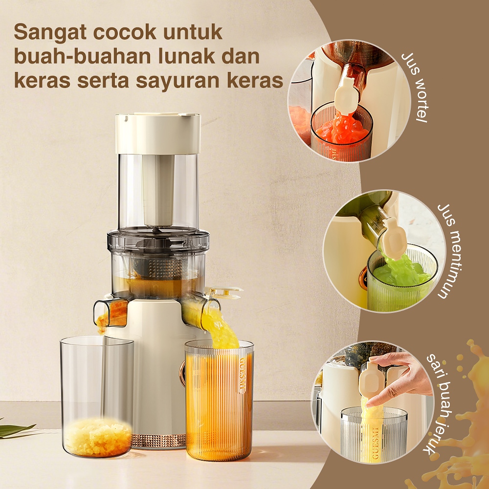 Saluyar Slow Juicer 99 PERSEN Ekstraksi • Corong Besar 105Mm • Whole Fruit Juicing • Food Grade • 200W Premium
