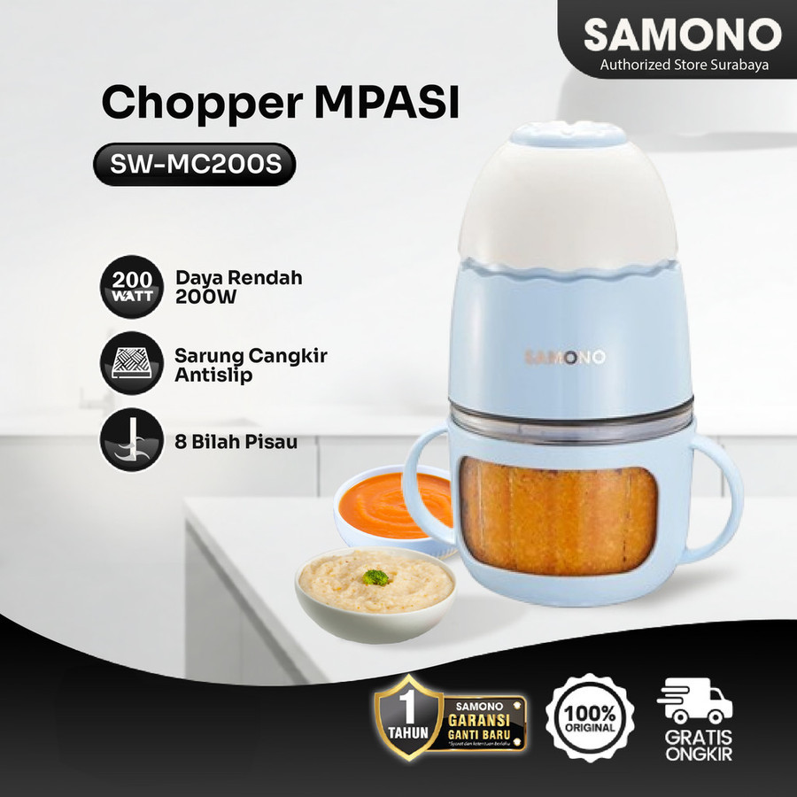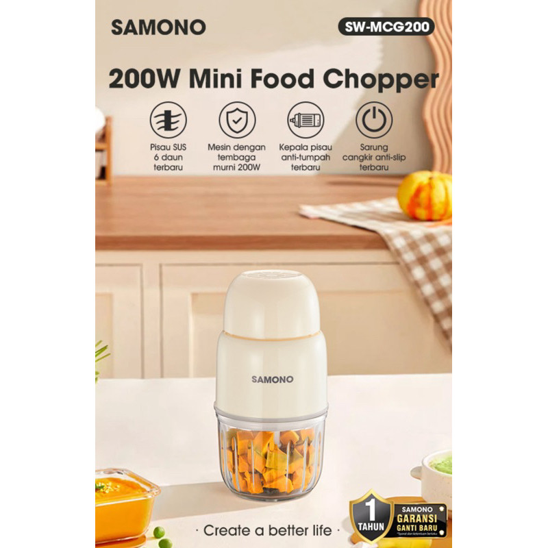 Samono Food Processor Food Chopper Sw Mc200 Mcg200 300Ml Mesin Penghalus Daging Dan Buah Garansi Resmi 1 Tahun Sw-Mc200