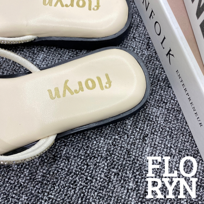 FLORYN SHOES - VELIA Cream Sandal Teplek Wanita Daily Tali Silang Permata Kekinian Elegan Flat Datar