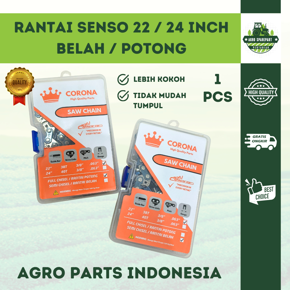 Rantai Senso 22 24 Inch Belah Potong Bar Chainsaw 38T 40T Mata Gergaji 3/8 Sinso Kecil 5200 5800