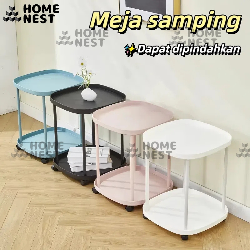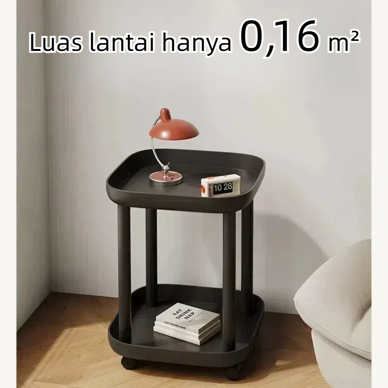 Meja Kopi Seluler Rak Makanan Ringan Meja Samping Sofa Dengan RodaRak Penyimpanan Dua Lapis