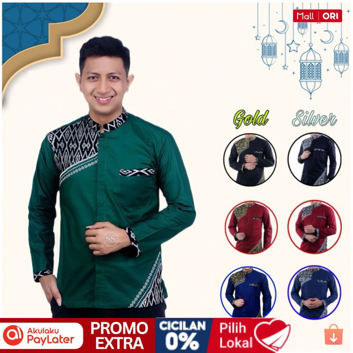 BAJU KOKO KOMBINASI BATIK DEWASA LENGAN PANJANG MATERIAL CATTON ADEM SERAP KERINGAT