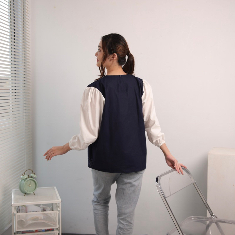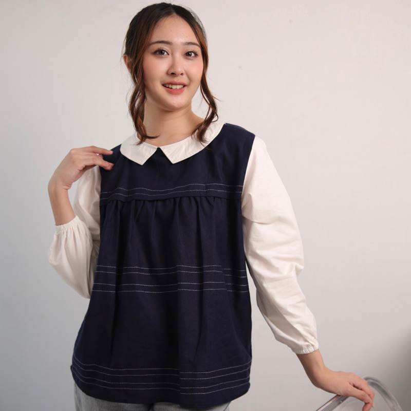 AMINI BLOUSE WANITA KATUN LINEN FABECO KEMEJA BLOUSE WANITA KATUN MIX DENIM TREND FASHION BAJU WANITA KEKINIAN
