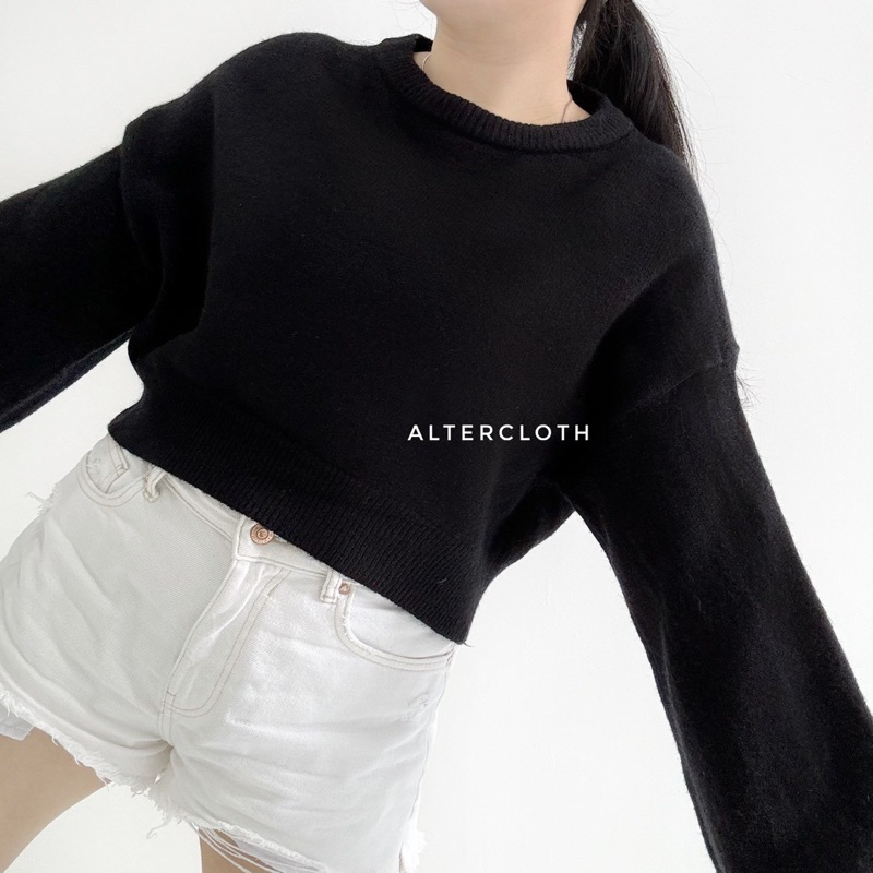 SWEATER ATASAN WANITA LENGAN PANJANG LONGSLEEVE SWEATER KOREA FASHION KNITWEAR MOTIF POLOS PLAIN