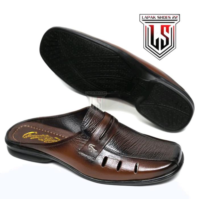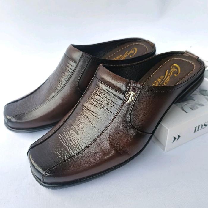 Sepatu Sendal Pria Selop Bustong Kulit Terlaris | Shoes Selop - C 04 Coklat, 39